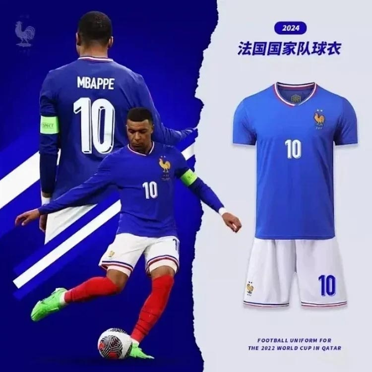 European Cup Mbappe French team jersey football uniform